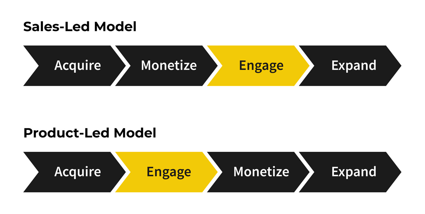 In a product-led growth model, the engagement step happens before the monetization step.